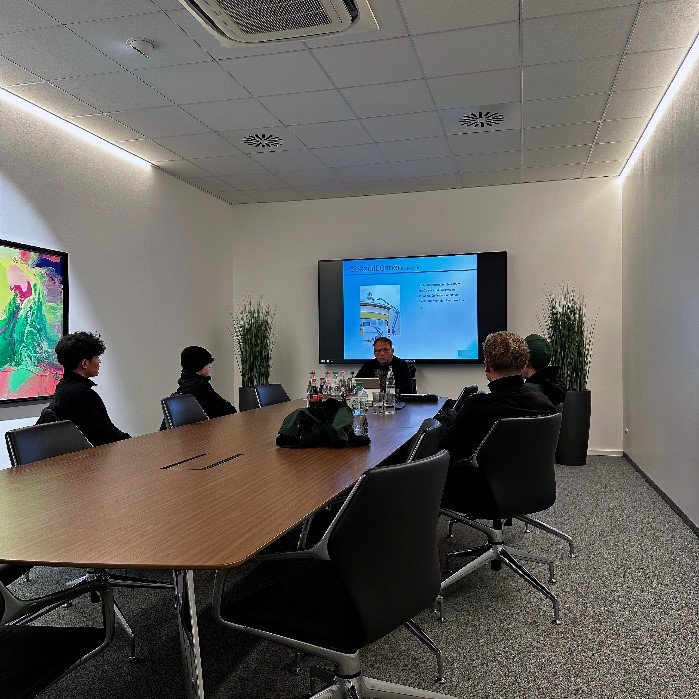 Zu Beginn stand eine Theorieeinheit auf dem Programm. Dabei lernten die Auszubildenden die wichtigsten Grundlagen rund um den sicheren Einsatz von Hubarbeitsbühnen kennen – von den rechtlichen Vorgaben über Sicherheitsbestimmungen bis hin zu den technischen Grundlagen der Geräte.