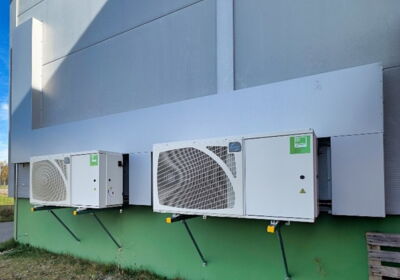 Für die Wärme- und Kälteversorgung wurde eine energieeffiziente Wärmepumpe mit einer Heizleistung von 120kW und einer Kälteleistung von 150kW, sowie ein Spitzenlastkessel mit einer Leistung von 170kW installiert.