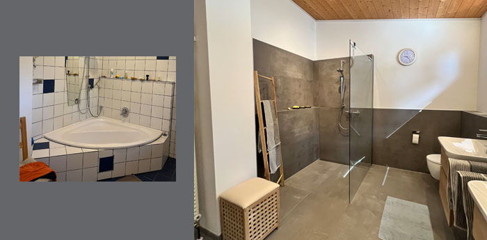 Vorher/Nachher - Große barrierefreie offene Dusche